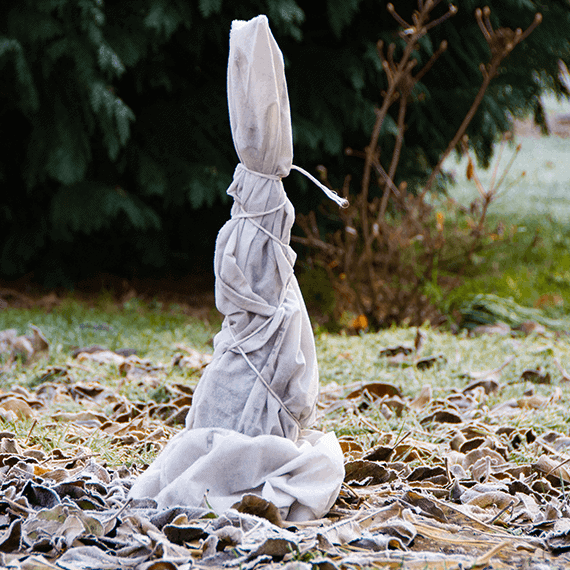 Bardzo dokładnie owiń je Agrowłókniną od podstaw aż do szczytu. W przypadku pnącz na pergoli postępuj w ten sam sposób.