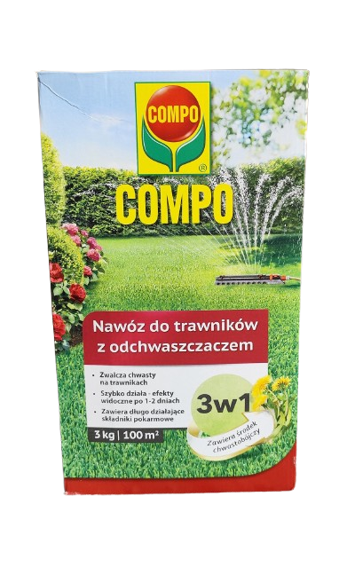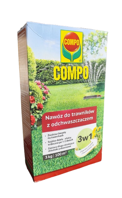 Compo Nawóz do trawników 3w1 z odchwaszczaczem 3kg + rękawice