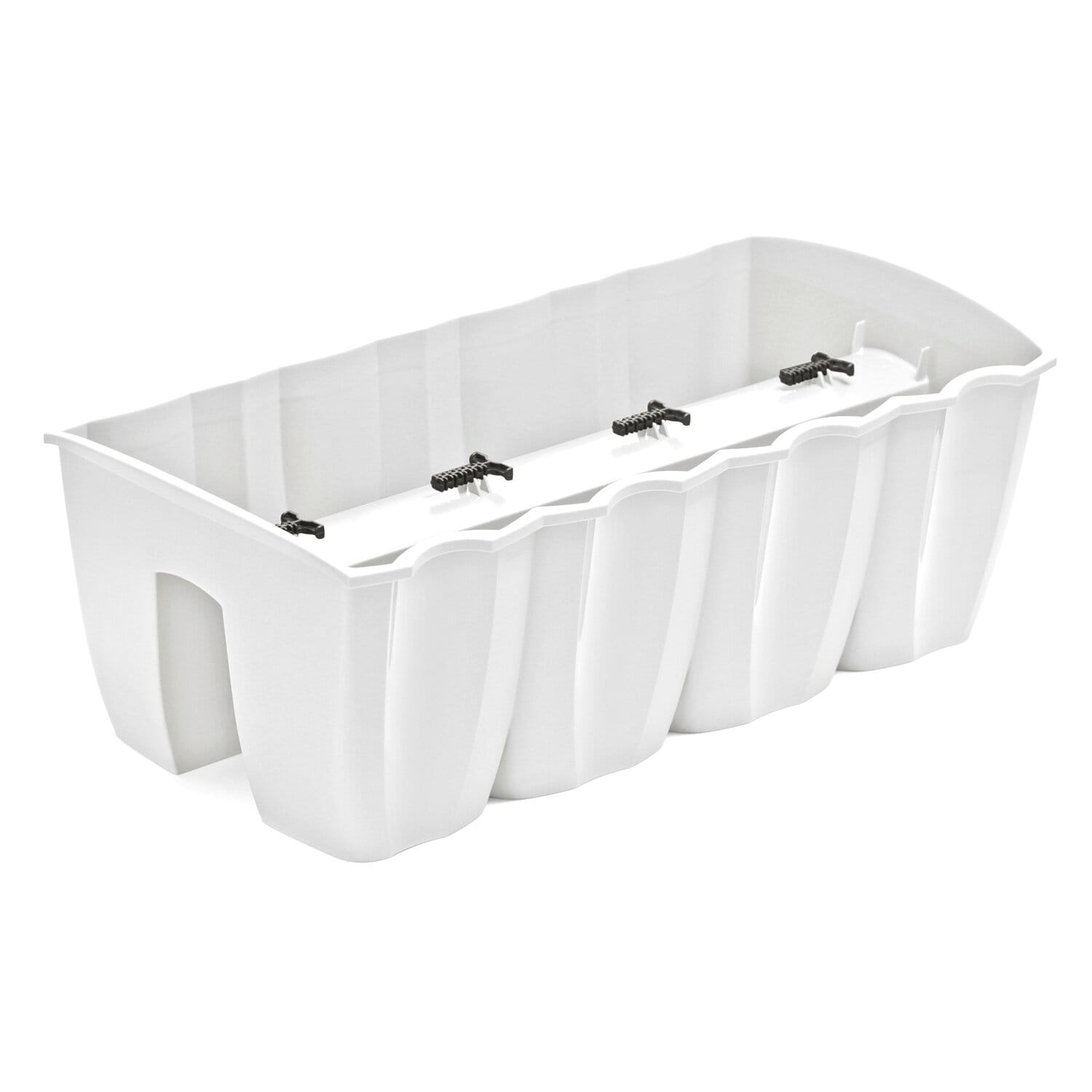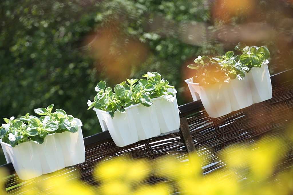 Doniczkę montuje się na balustradzie za pomocą specjalnych uchwytów, umieściwszy ją tam wcześniej przy pomocy wgłębienia w jej podstawie.