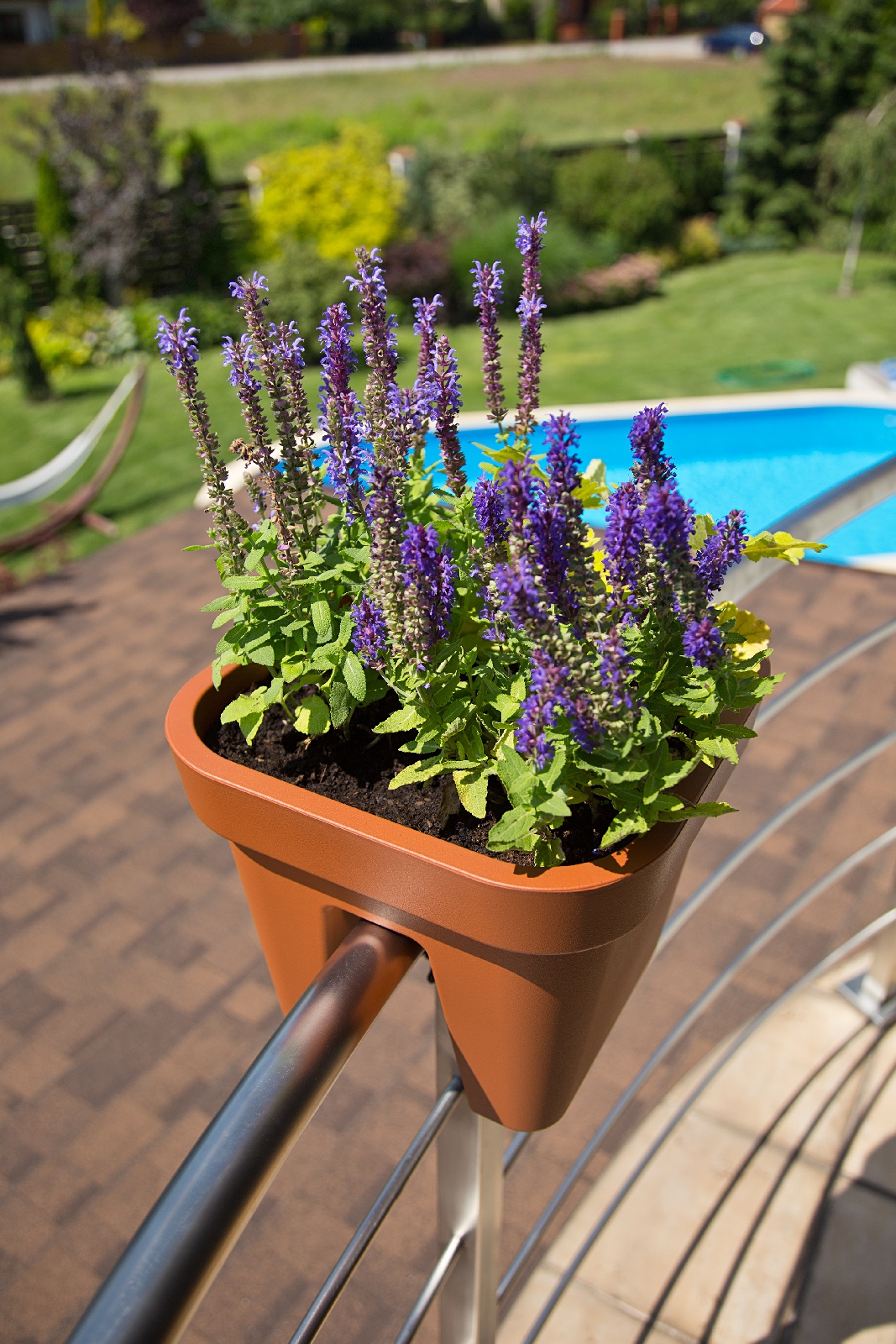 Doniczka pasuje do każdej balustrady o maksymalnej szerokości 6cm.