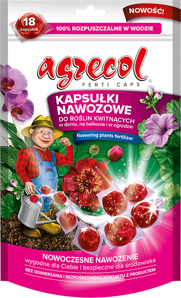 Kapsułki nawozowe do roślin kwitnących w domu, na balkonie i w ogrodzie to rewolucja w nawożeniu! Nawożenie nigdy nie było tak proste. Bez odmierzania i kontaktu z produktem sporządzisz roztwór nawozowy. A co najważniejsze nie ma ryzyka ubrudzenia się, ponieważ nie musisz odmierzać produktu. Kapsułki nawozowe szybko, łatwo i wygodnie pomogą zatroszczyć się o rośliny. Precyzyjnie dobrane składniki pokarmowe odpowiadają potrzebom Twoich roślin kwitnących: w domu, na balkonie oraz w ogrodzie. Wystarczy wrzucić kapsułkę do wody, wymieszać i gotowe – bez konieczności dawkowania. Opakowanie po kapsułkach nie zawiera resztek nawozu, dzięki czemu chronimy nasze środowisko. Sposób stosowania Nawóz stosuj co 10-14 dni, od marca do października. W trakcie podlewania roślin kwitnących staraj się nie polewać roślin po kwiatach. Po nawożeniu należy pamiętać o regularnym podlewaniu roślin. Wrzuć kapsułę do pojemnika z 2-5 l wody. Odczekaj aż folia się rozpuści* po czym dokładnie wymieszaj. Uzyskanym roztworem podlej rośliny.