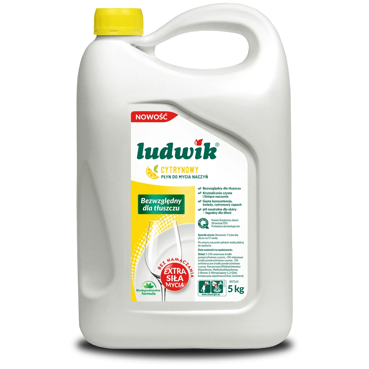 Nowa, udoskonalona receptura płynów Ludwik zapewnia ponad 25% większą skuteczność w usuwaniu tłuszczu i zabrudzeń, co potwierdziły badania niezależnego, akredytowanego laboratorium. Dzięki temu produkt jest jeszcze bardziej wydajny i efektywny.