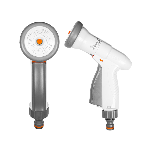 Pistolet do zraszania wielofunkcyjny "SUPER SPRAY". Opatentowany sposób zamykania i otwierania przepływu wody. Wykonany z najwyższej jakości tworzywa ABS. Testowany powietrzem na urządzeniach ciśnieniowych. 2 lata gwarancji. Dostępny w kolorze szaro-białym. Każdy produkt z grupy WHITE LINE posiada przywieszkę z kodem kreskowym i opisem.
